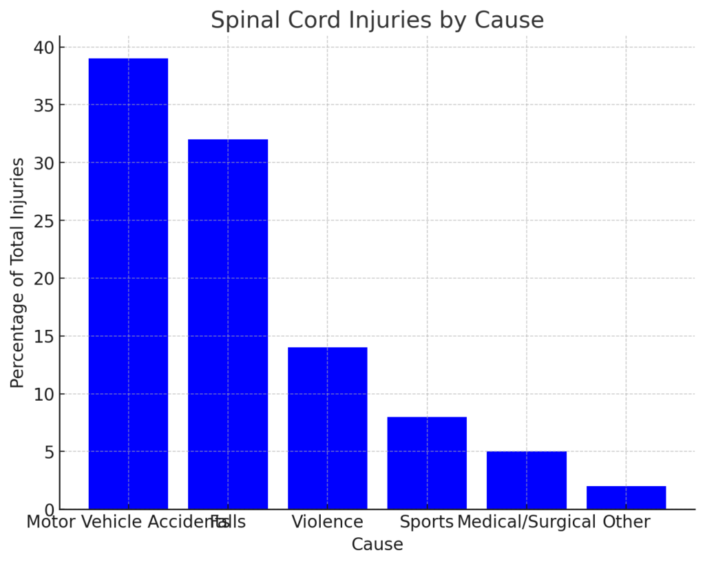 According to statistics from The National Spinal Cord Injury Statistical Center, there are approximately 17,700 new spinal cord injuries each year. Motor vehicle accidents are the leading cause of these types of injuries, including truck, motorcycle, bike, and pedestrian accidents.